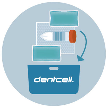 Deposite en el Kit el tubo conector con el diente dentro de la bolsa protectora y las bolsas refrigerantes